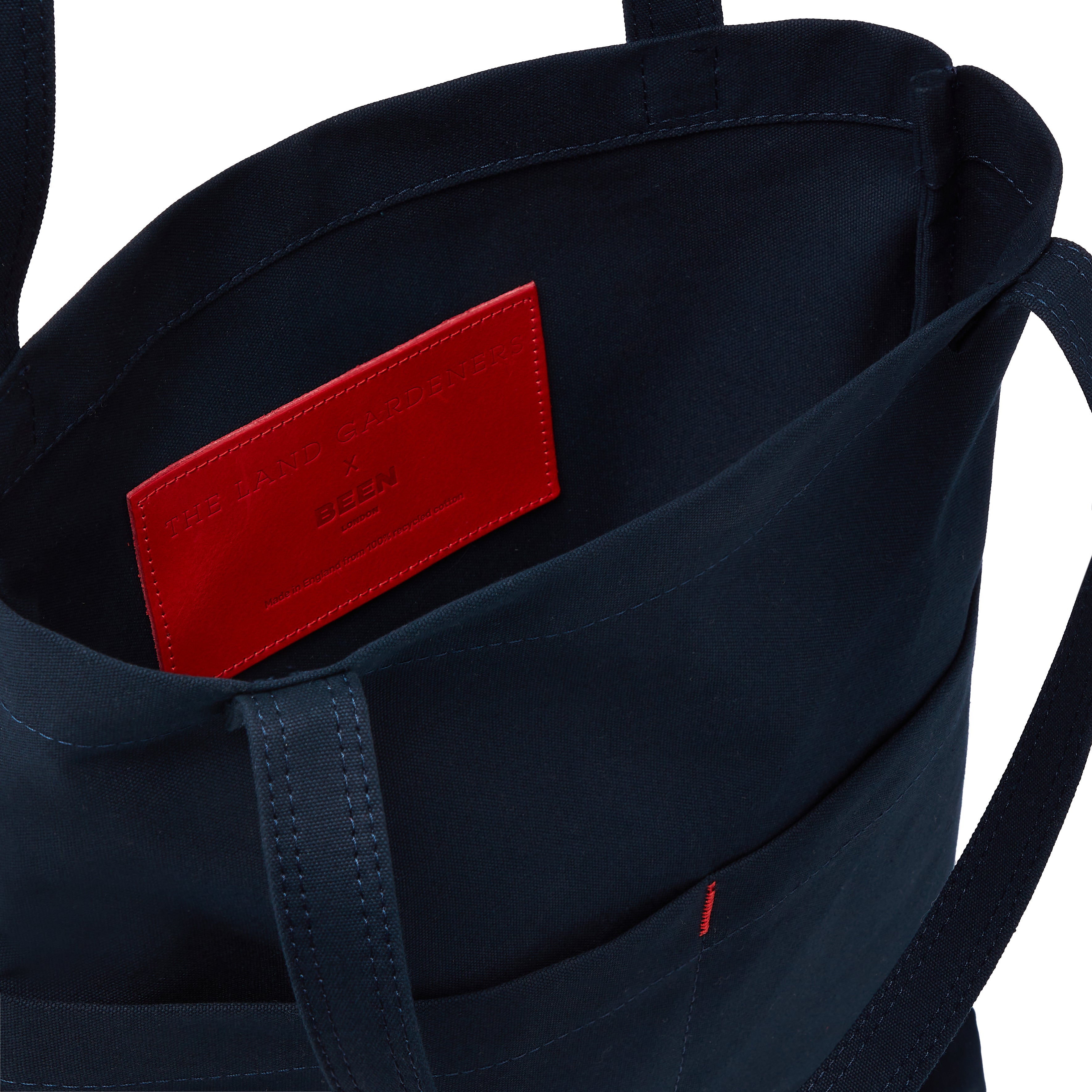 “I’ve always admired Bridget and Henrietta’s incredible work with soil. Sustainability and impact aside, there’s no other duo in the world who make compost look so stylish! So when they approached us with the idea of creating a gardening bag that could also be a handbag - that was a match made in heaven and a lovely design challenge for us as a team. The bags were inspired by items The Land Gardeners use and need day to day, whether they are gardening, attending meetings or travelling. Collectively, we wanted the bags to be versatile and beautiful, and all about the craft, material and purpose. It felt right to use a natural material like recycled cotton for this project rather than something synthetic, and to think about how we could achieve function and beauty in the design whilst keeping panels straight to minimise waste.”