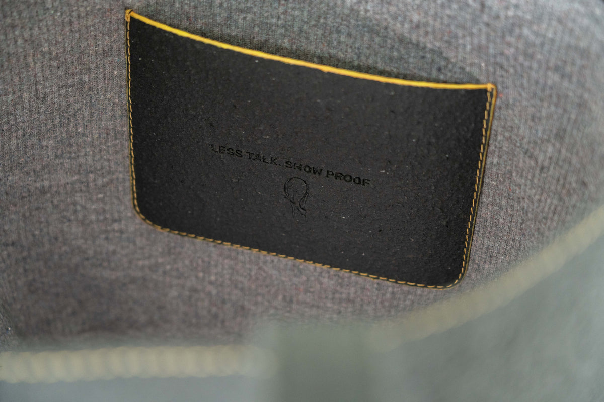 The new collection, which includes a tote bag, laptop case, and cardholder, was designed by BEEN to showcase the full-circle process. The durable leather sheets are made from old shoe leather, the soft textile interior comes from recycled shoe uppers, and the foam-like padding is sourced from recycled soles.