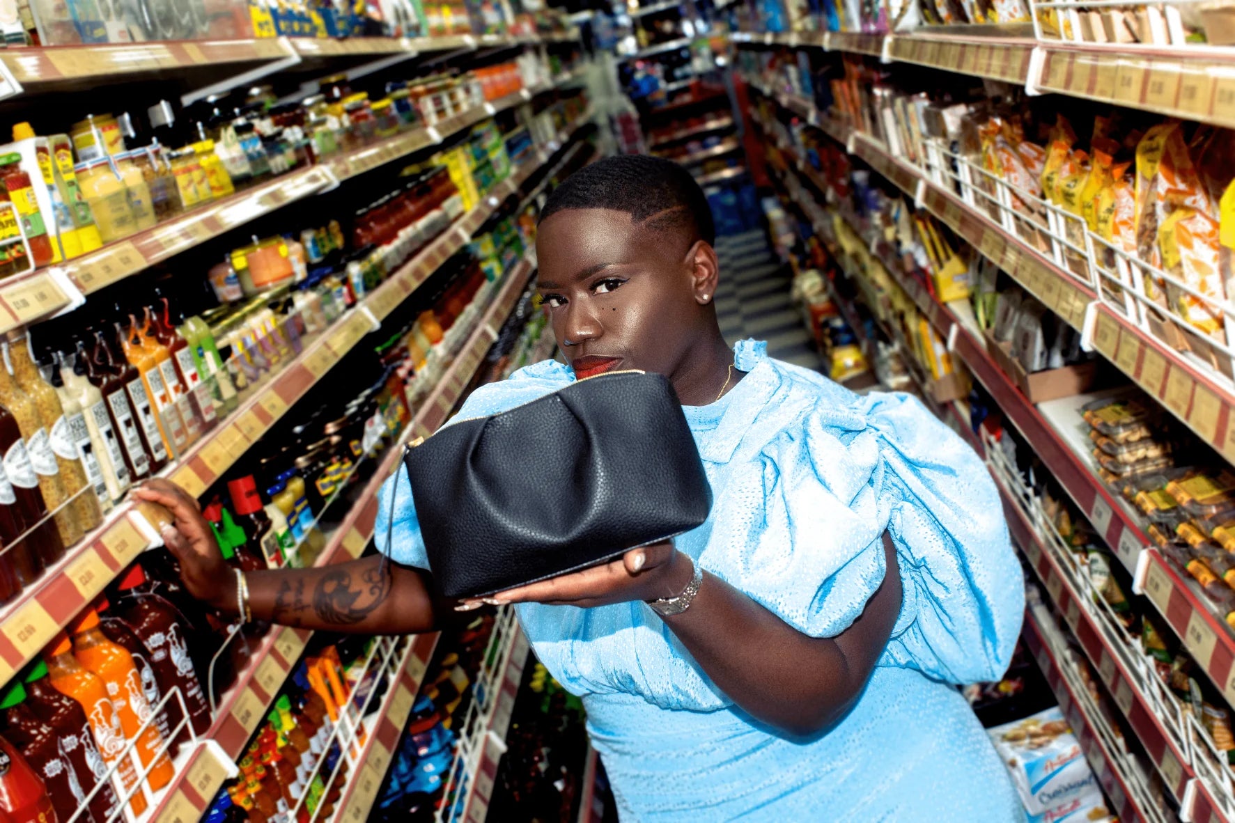 Perfectly pleated paired with a statement top handle, The ‘Esmé’ handbag is one of a kind and ready to add a touch of luxury to every single outfit you wear. Delightfully named after Candice Brathwaite’s daughter, the ‘Esmé’ handbag features a comfortable crossbody adjustable strap decorated with ornate gold hardware, inside includes a practical washable black lining and an interior pocket for valuables.